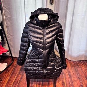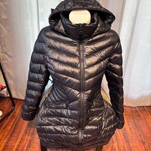 Andrew Marc Black Puffer Jacket with velvet lined hood size small