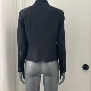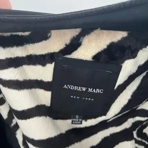 Great jacket to dress up or go casual, this jacket has a zebra print calfhair lining and leather trim on the zippered sleeves.