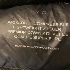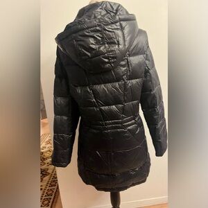 Perfect condition, packable, lightweight, warm and comfortable. Velvet trim around collar.