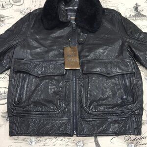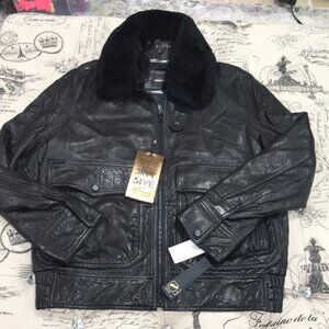 Men's Marc New York 3614 Leather Jacket With Genuine Lamb Shearling Collar