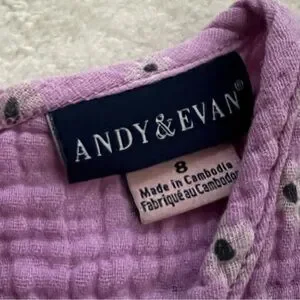 This elegant blouse by Andy & Evan features a sleeveless design with delicate ruffle details along the armholes. Made from a textured fabric, it offers a soft, feminine look perfect for warm weather. The loose, flowing silhouette and rounded neckline add to its charm.