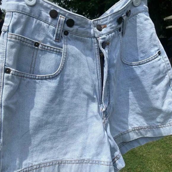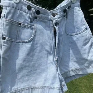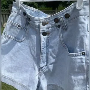 These vintage jean shorts are the perfect length on your thigh - not too short, not too long. They fit super high waisted, with button details previously used for suspenders. The back patch is funky and cool, adding an effortlessly fun detail to your outfit.