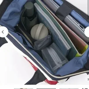 Anello colorblock backpack in cream with a red front pocket and black accents. Durable canvas construction with a front zip pocket for easy access. Comfortable straps and a clean, versatile design for daily use.