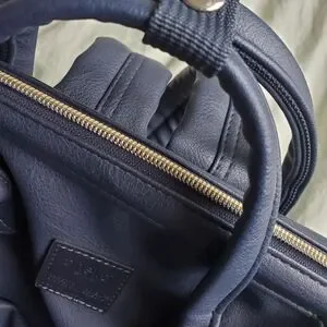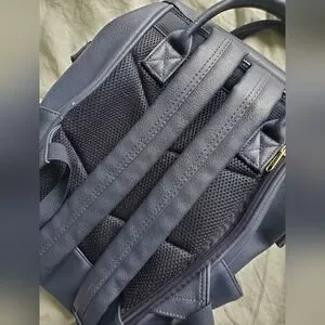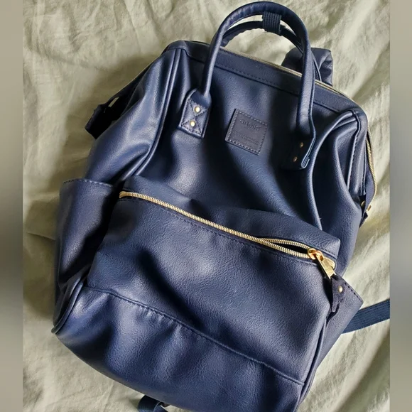 10/10 condition. Navy patent leather Anello backpack. With wire opening that allows for easy access and visibility of contents. It's very functional, featuring a back security pocket, carry-on belt for travel, and a padded 13" laptop sleeve. Great for work, school or even as a sleak diaper bag.