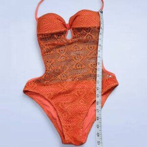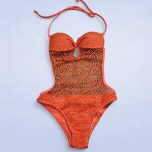 Anemone Bright Orange Crochet Lace One Piece Bathing Suit - Size Small