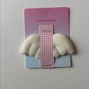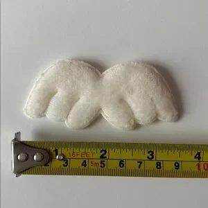 Soft white plush accessory shaped like angel wings. Perfect for crafts or decoration.