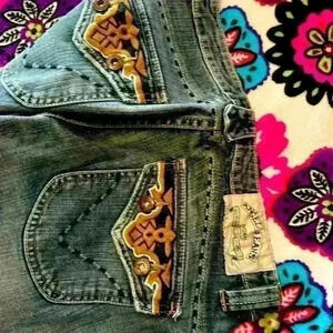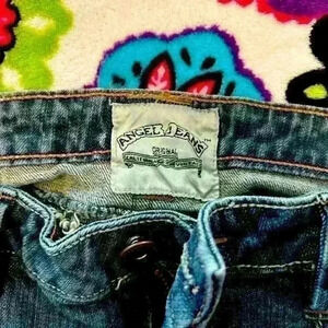 Angel jeans size 9 brown embroidered bum and unique stitching down the legs