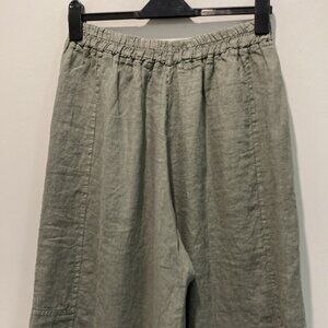 Angela Mara Green Linen Culotte Capris Pants Size Medium
