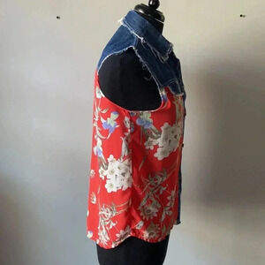 * beautiful floral pattern on crepe like material with contrast jean top & and front panel