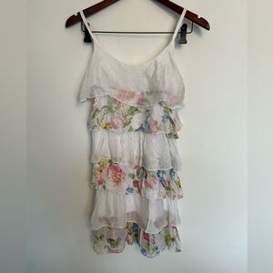 Angela Mara Chic floral tiered ruffle dress with spaghetti straps. Features a beautiful mix of colors. Size small super cuter for beach days