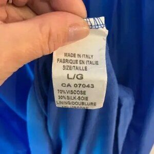 An Angel Moda blue, tiered mini dress with ruffled details and drop sleeves. It features a tiered skirt, ruffled details, and fashionable drop sleeves, creating a relaxed silhouette. Has a V-neck with a tie detail. The tiered design and relaxed fit lend themselves to a bohemian, casual, or summer dress style. It is described as "flirty" and "playful" due to the tiered design and ruffled elements.