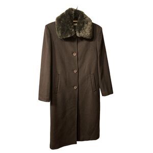 Angelica.L wool and cashmere blend dress coat in immaculate condition next to no wear. Has four buttons on front for closure and ties up in front. There are two side pockets and the collar is fur which is removable. The inside has a nice light lining but is super warm, soft and luxurious