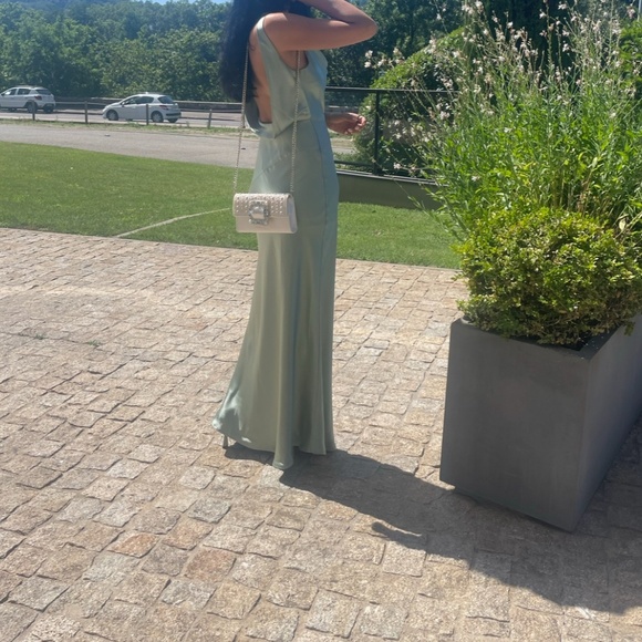 Angelique Satin Cowl Back Maxi Dress - Sage green
