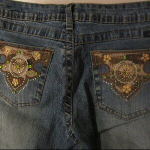 Angels Low Waist Wide Legged Y2K Embroidered Pocket Jeans