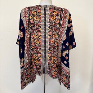Angie Boho Kimono Floral Southwestern Wrap Cardigan Blue Orange Sz M