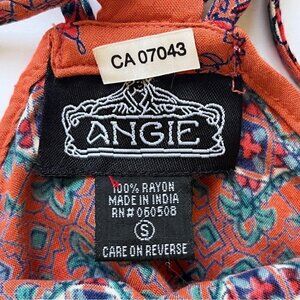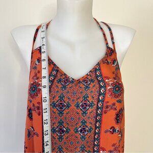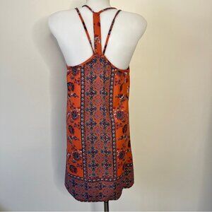 Angie Mini Dress Double Strap Racerback Orange Boho Moroccan Southwestern Sz S