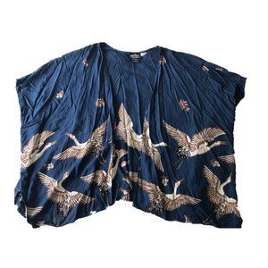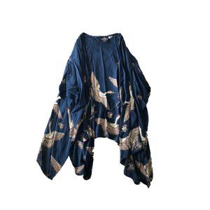 Versatile Design: This cover-up features a stunning crane pattern in navy blue with Crane accents of white, brown, red, black, and grey, inspired by Japanese aesthetics. It's the perfect piece to throw on over a t-shirt or swimsuit for a chic beach or poolside look.
