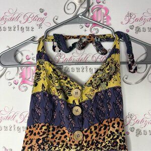 Angie dress animal print long maxi stripe buttons strappy back halter style