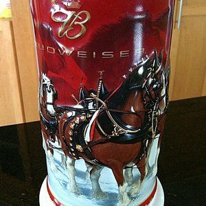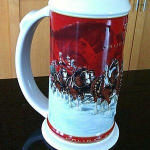 Celebrate the holiday season in style with this Anheuser-Busch Budweiser Stein Clydesdale Holiday Edition 25th Anniversary Large. Featuring a festive design showcasing the iconic Budweiser Clydesdales, this stein is a perfect addition to any collection. Made from high-quality pottery and glass, this decorative cookware is both functional and visually appealing. Whether you're a beer enthusiast or simply appreciate beautifully crafted serveware, this Budweiser stein is sure to impress your guests during holiday gatherings. Cheers to 25 years of holiday cheer with this limited edition collectible! Great Christmas gift
