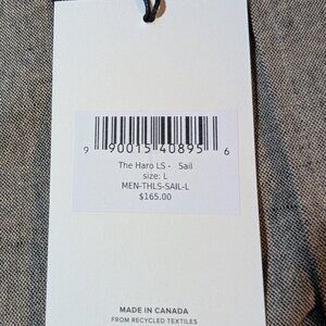 Have this shirt in another colour and love it. Brand new with tags, never even unfolded since purchase. Size large, colour is Sail which is sort of like a heather brown (see photos).