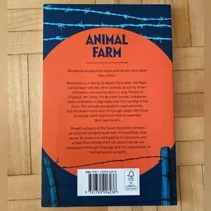 Explore the captivating story of 'Animal Farm' with this striking orange and blue cover. A must-have for literature enthusiasts.