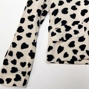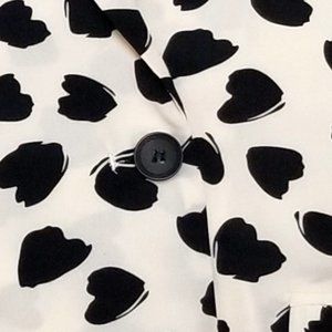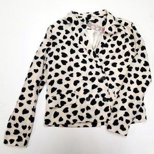 An effortless, tame and feminine blazer with animal print in inky hearts on a creamy, barely there, fabric from Audrey 3+1. This item is collared in a more masculine cut and can be styled with a chic hat and bright slacks for best results.