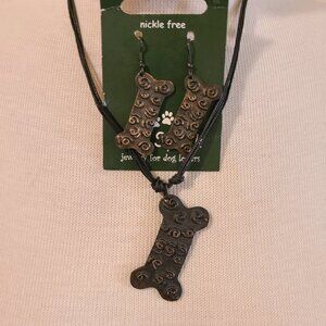 Dog Bone earrings (1 1/4" long) and matching necklace (bone is 2" long)- NWT