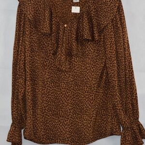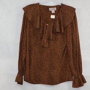 This blouse would look great with one of my leather skirts. Animal print, flouncy collars. SZ M by Le Caviar