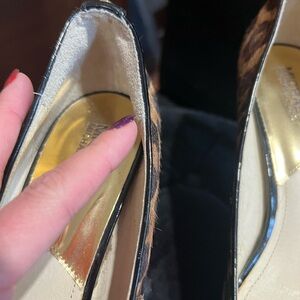 Please see photos for markings and wear and tear. The inside has some marking, and the heel casing has a little fold. Does not interfere with how great these look on!