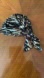 Stylish animal print headwear turban. Features a mix of black, brown, and tan colors.