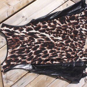 A really fun tunic tank top with faux animal print and snake skin side panels.