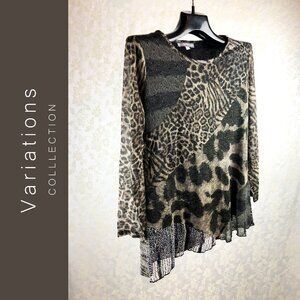 Animal Print brown Multi textured Variations Long sleeve extra long top lined