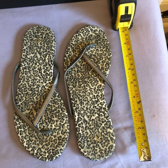 Animal print gap flip flops Size 6 Metallic strap EUC Measurements in pictures