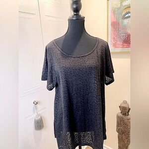 Animal print fabric tee in black with scooped neck. Tee is slightly sheer. 🖤🐆 Sleeves are flowy.