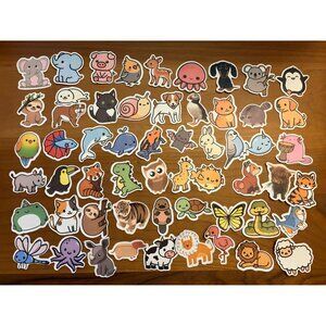 Cute animals, zoo life, insect life, sealife Waterproof Vinyl 100 pieces Stickers.