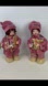 Adorable musical animatronic wind up carollers with pink outfits, soft bodies and porcelain heads.