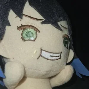 Pair of anime character plush toys featuring gray, blue, and tan colors.