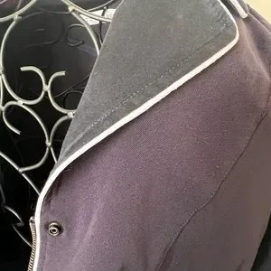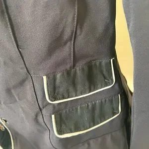 Navy color with white trim and velvet details in the collar and pocket. Fits like XXS/XS (please see the tag picture for more sizing details).