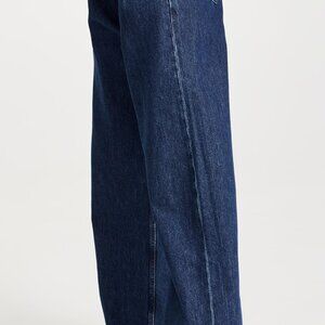 Designed with a high rise and an extra-long wide leg. Denim has no stretch and may feel snug initially, but will soften and give with regular wear.
