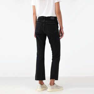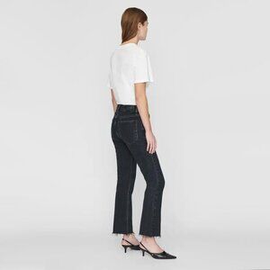 Such a cute everyday jean - done in a versatile faded black wash. They high rise fit, with a cropped flared cut in the leg - cute with sandals, sneakers or boots - as the weather dictates! They have a frayed hem, which is currently cuffed.