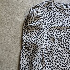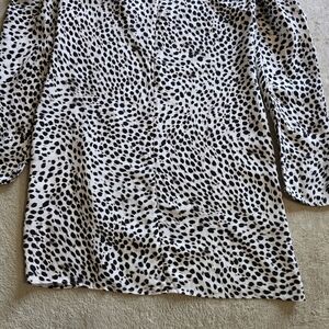 Long sleeve shift dress with gathered sleeves and concealed back zipper. Made from 100% Cupro, silk like feel. In very good used condition