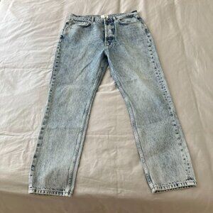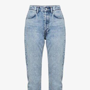 The Sonya Jean is an everyday wardrobe building block. Its constructed from 100% cotton rigid denim in a versatile light blue wash with a faded, sun-bleached look inspired by authentic vintage denim. SLIM STRAIGHT: The Sonya Jean features a high-rise, slim-fitting silhouette that sits close through the waistline and mid thigh, straightening out at the knee into a slightly slimmer ankle.