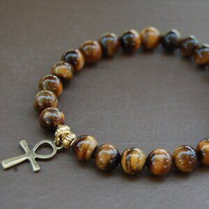 Ankh Cross Bracelet, Tiger Eye Bracelet,Key of Life Bracelet