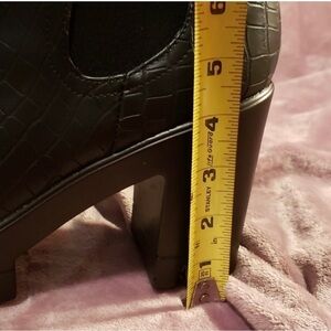 Step up with confidence and strut your style with these ankle boots from SHEIN. Easy to slip on with elasticized side bands. Trendy Croc print design , 4” heels.