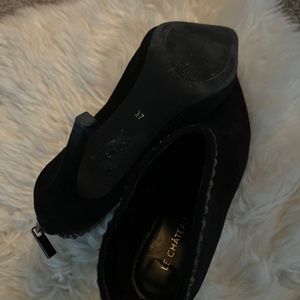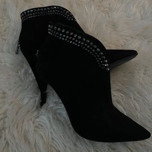 Le Chateau ankle bootie heels - suede with rhinestone embellishment. Size 37. Worn only a couple of times for events.