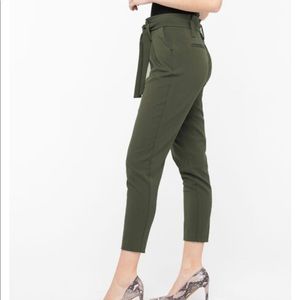 New without Tags- Ankle length 24’ short paper bag pants with removable sash! Light weight perfect for spring/summer in Green with tapered legs.