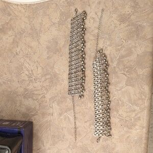 This is a pair of anklets with jingle Bell type charms on them. Each one of the bells is an empty open charm that does not have a ball inside of it. They jingle or rattle against each other and because they're empty that's where the sound comes from. Pictures show the inside and outside as well as length.