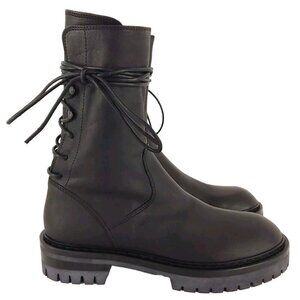 Ann Demeulemeester Louise Dusty Leather Combat Boots Size 37 7 Womens Black