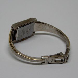 Feminine Anne Klein wristwatch in silver and gold tone with genuine diamond. Very delicate and elegant looking. Includes original box and lifetime warranty. Exterior of the box has a small stain (see pic).