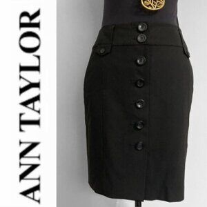 Ann TAYLOR Black Virgin Wool Pencil Skirt Button Down 2